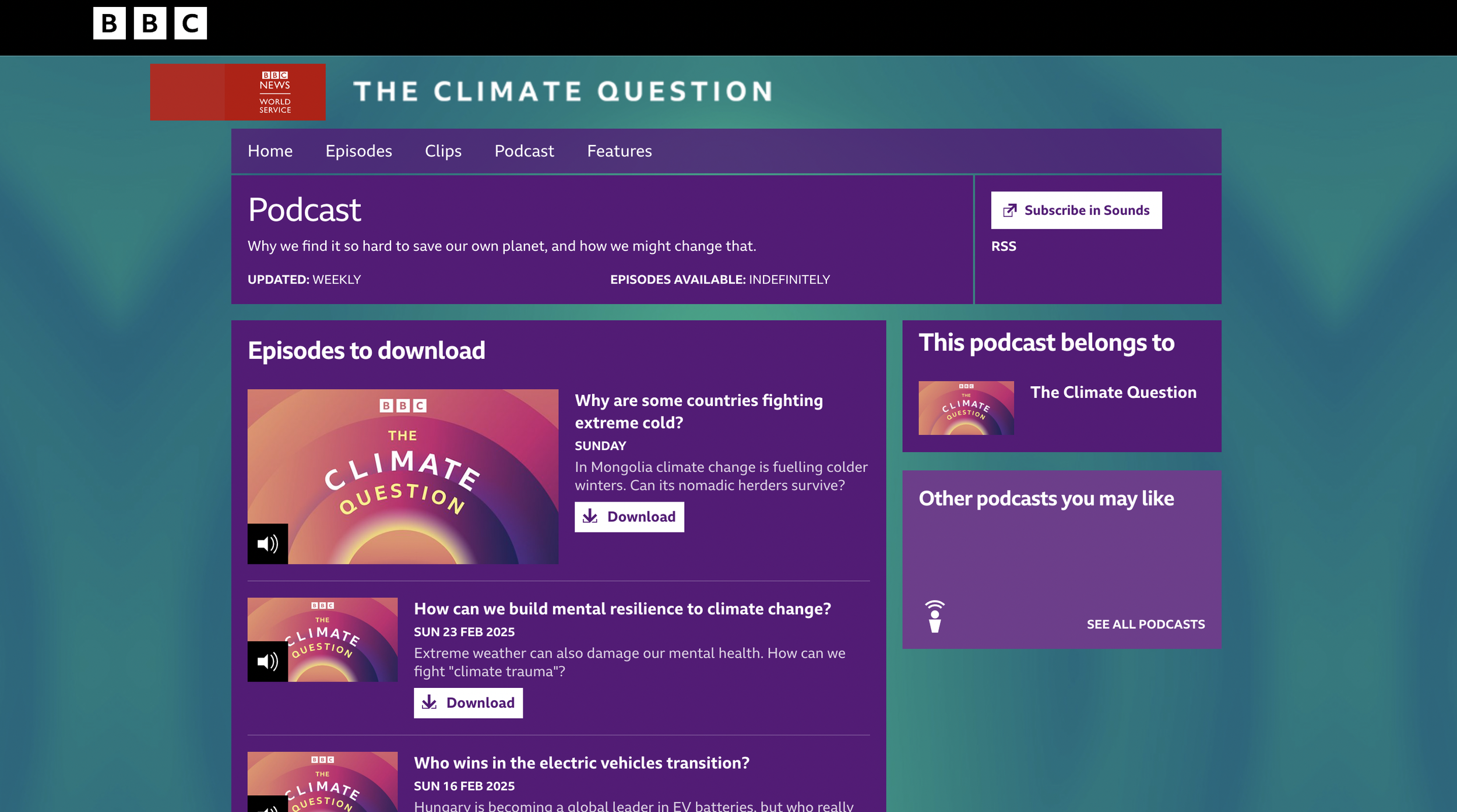Overview: "The Climate Question" is a BBC World Service podcast exploring the challenges in addressing climate change and potential solutions.