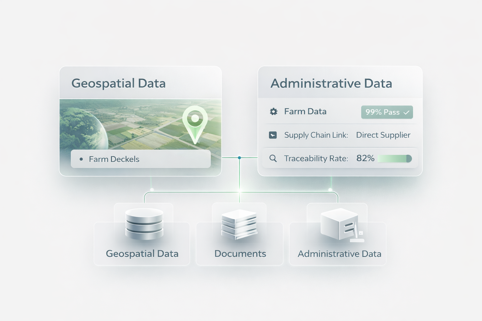 First, geospatial and administrative data need to live in the same system. When these data types are managed separately — coordinates in one place, documentation in another — linking them accurately to individual transactions becomes a significant manual burden. As is typically the case with manual reporting systems, errors easily accumulate and audit trails can fragment, especially when working at such a large scale. A centralized system that holds both data types in relation to each other reduces reconciliation work and makes anomalies visible before submission rather than after rejection.