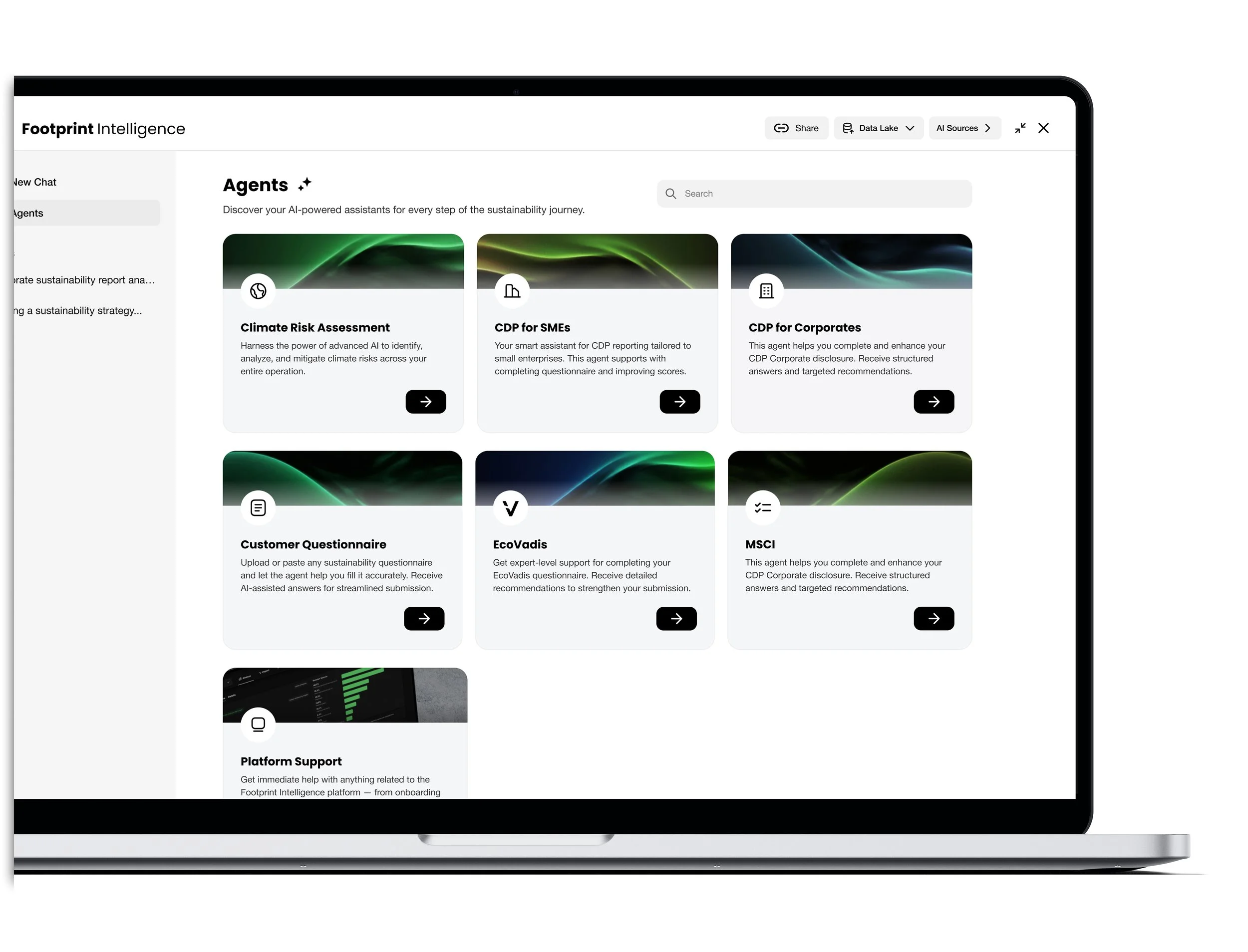 Save hours of manual work and eliminate errors. Agents are your intelligent assistants that help with the tasks like climate risk assessment, CDP, EcoVadis, customer questionnaires, MSCI and more.